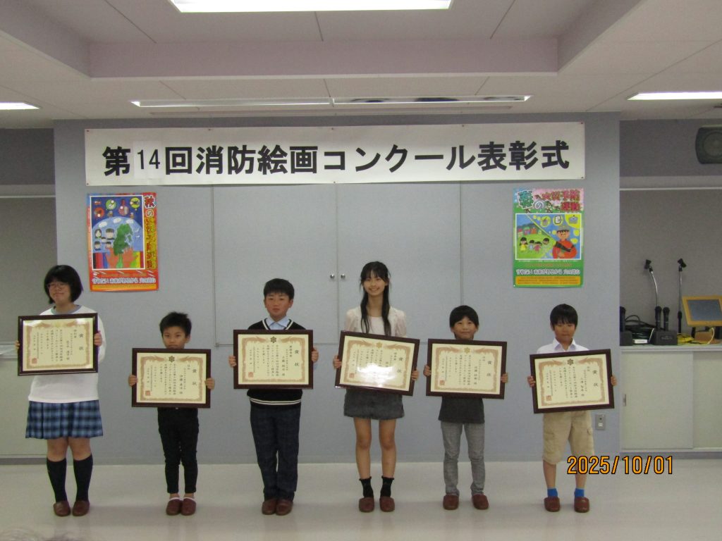 当消防本部では,令和7年10月1日(水),吉田消防長から消防絵画コンクール入賞者に表彰状を贈呈しました。