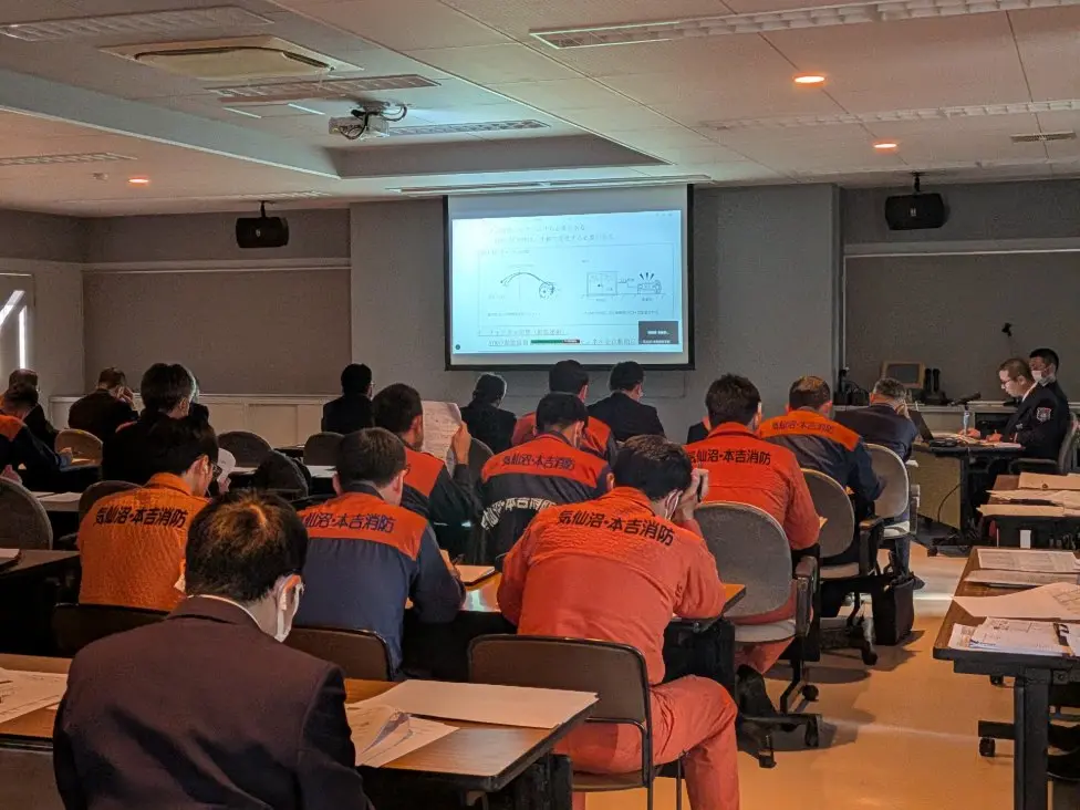 今回の共同運用により,119番回線切り替え等のシステム面だけでなく,出動基準や現場活動時の無線要領なども変更されます。仮運用開始後の対応に遺漏がないよう,オンライン配信を含め多くの職員が参加し,熱心に耳を傾けました。