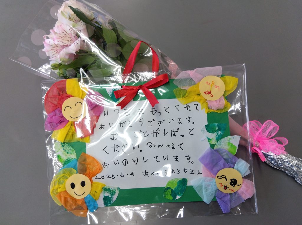 いただいたメッセージカードと花束は庁舎内に大切に飾らせていただきました。