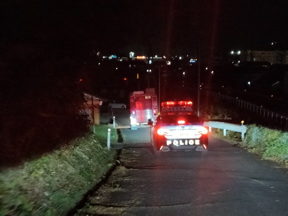 令和7年11月11日,午後7時から火災予防運動の行事として,気仙沼消防署古町出張所のポンプ車と気仙沼警察署気仙沼中央交番のパトカーにて鹿折地区を合同で巡回し,車載マイクにより放火防止対策を呼びかけながら夜間警戒を実施しました。
