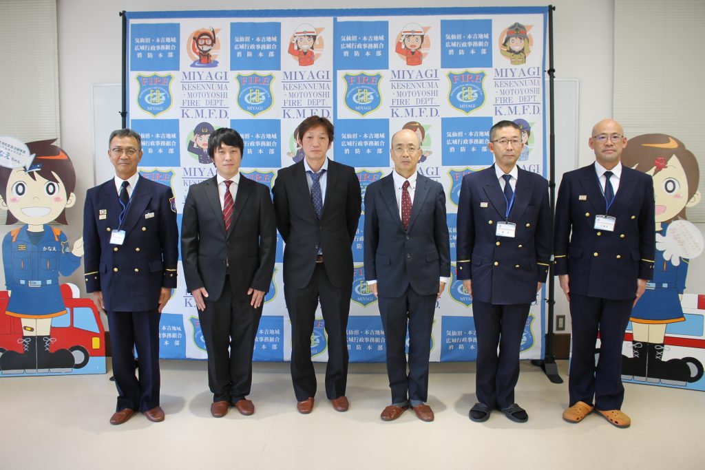 その勇気ある行動と的確な救助活動により尊い命を救った功績をたたえ,吉田消防長より感謝状の贈呈と感謝の言葉をお伝えしました。