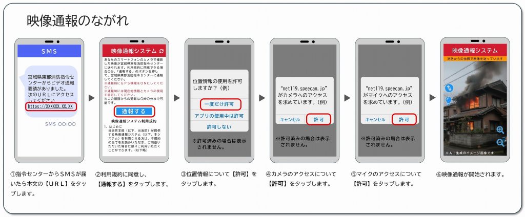 - 映像通報や動画の送信は,指令員が必要と判断した場合に行います。