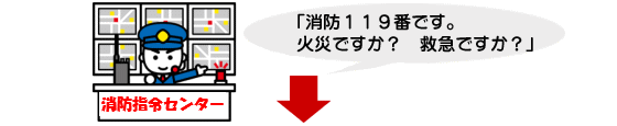 気仙沼市と南三陸町内から「119」番通報すると,石巻市にある宮城県東部消防指令センターにつながります。通報時は落ち着いて,はっきりと指令員にお話しください。